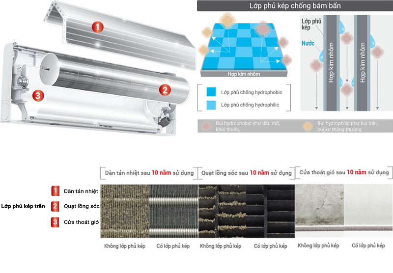 - Lớp phủ kép chống bám bẩn