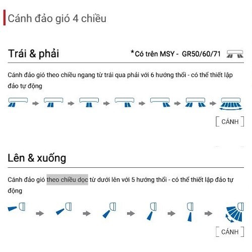 - Chế độ gió:Điều khiển lên xuống tự động, trái phải tùy chỉnh tay